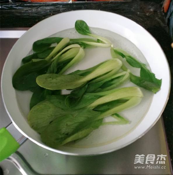 13. 另起锅水开后,滴少许油,放入小青菜,焯烫熟拣出
