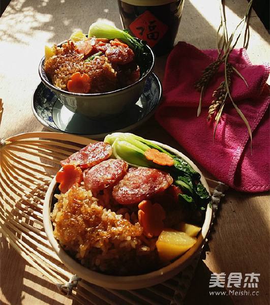 手撕鱿鱼丝电饭煲版的做法 1. 准备煲仔饭俗唤殊的几样食材