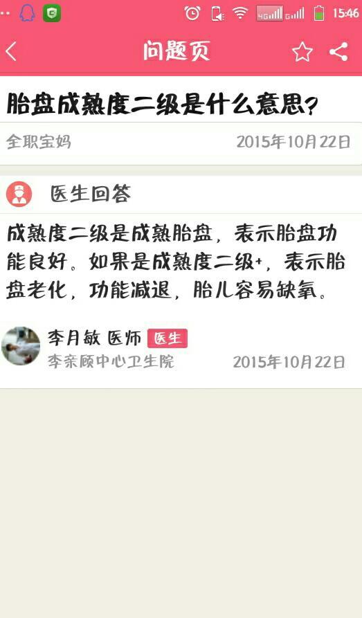 ﹏久爱不腻:胎盘早熟是因为宝宝吸收不上营养,所以就二级了
