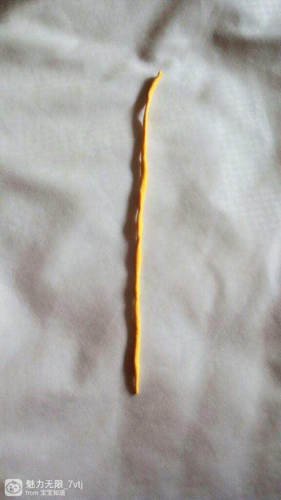 黄色彩泥搓成细长条。耗侨围着皇冠绕一圈。如图所示