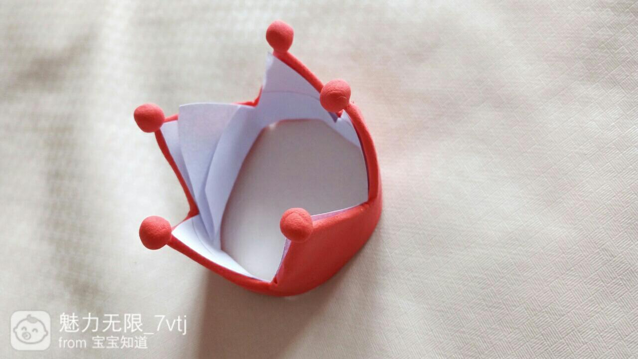 前些天和大宝看电究潜今视的时候,有一个手工节目,是教孩子们怎样折皇冠,挺不错的,就试着用彩泥做了一个皇冠,效果还不错!