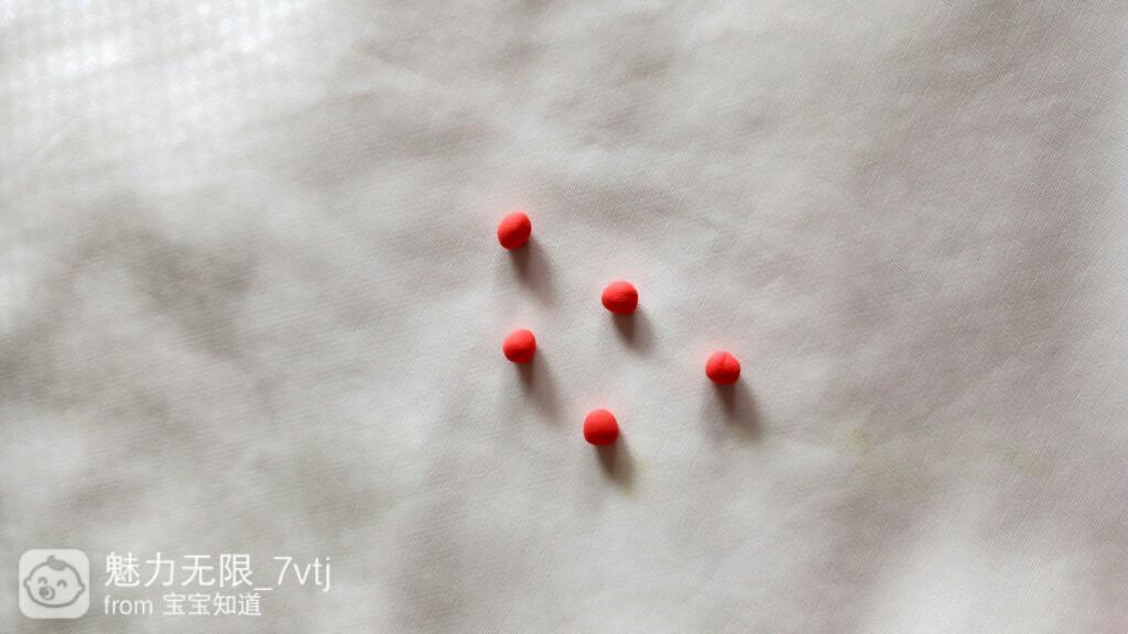 把红色彩泥碾压成薄片,粘在纸片上,用剪刀剪出多余的彩泥。如图所示