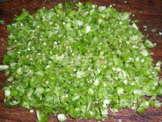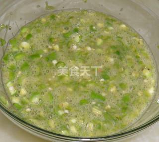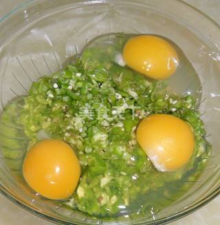 3 加入三个鸡蛋到剁碎的杭椒里。