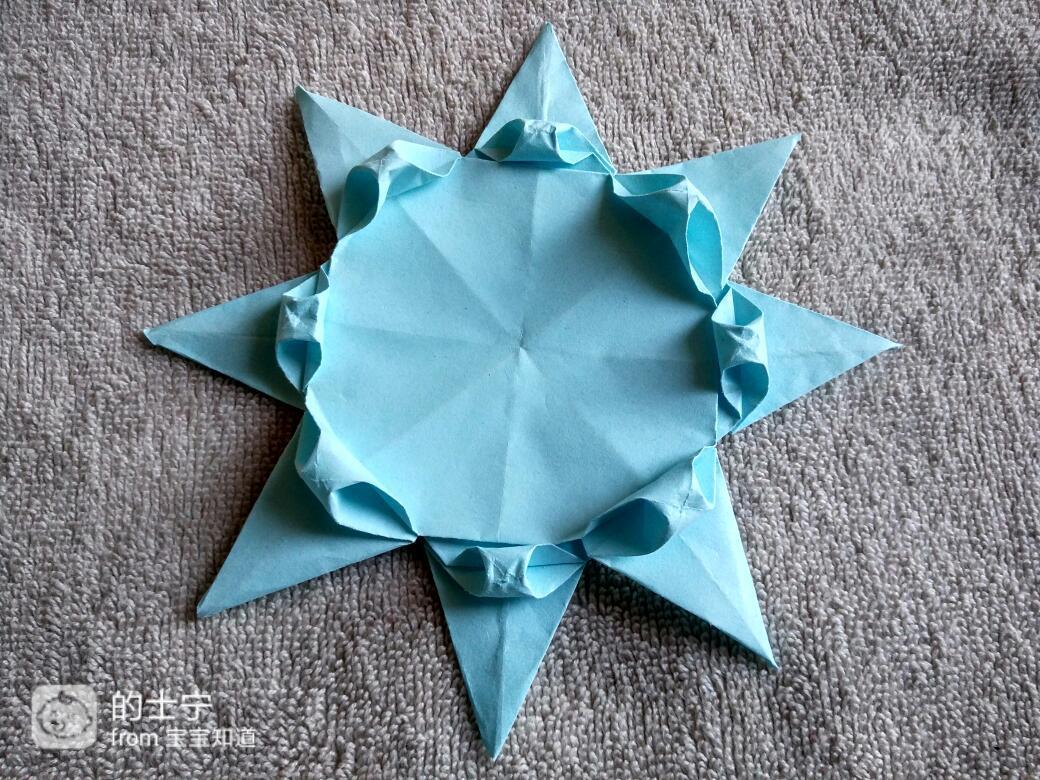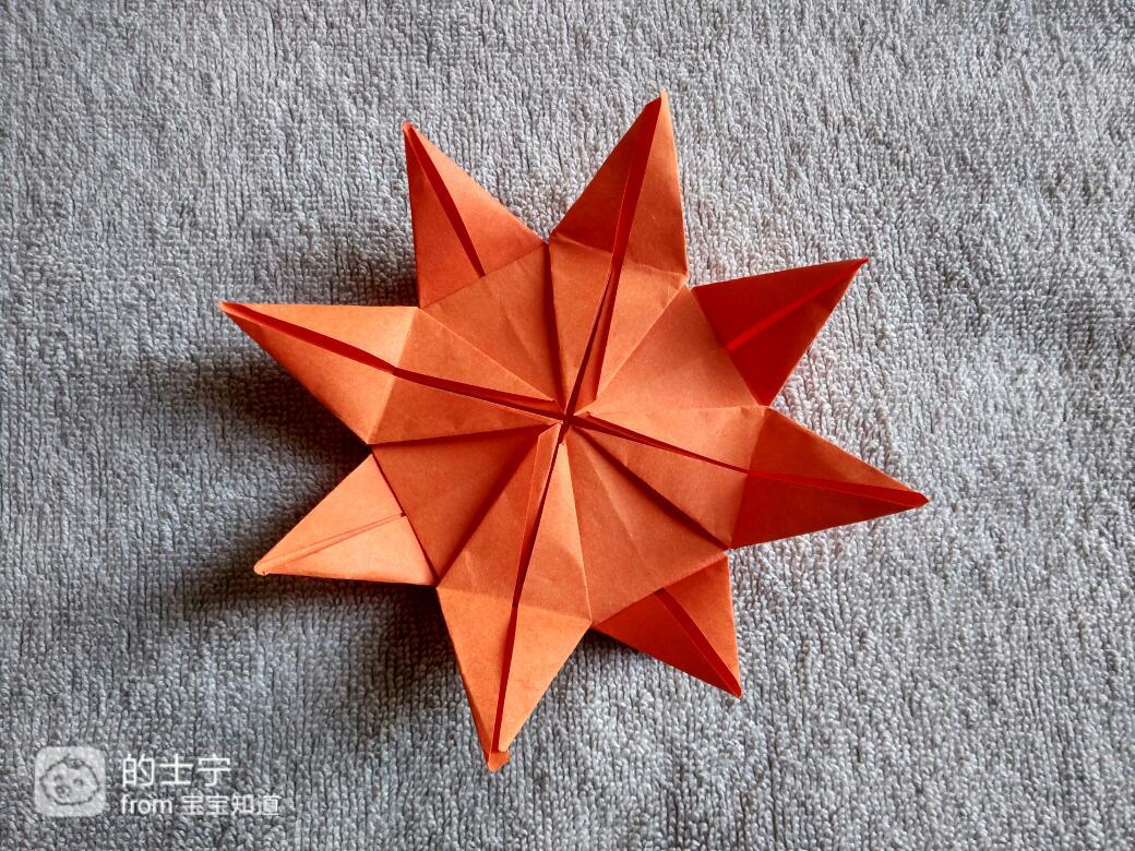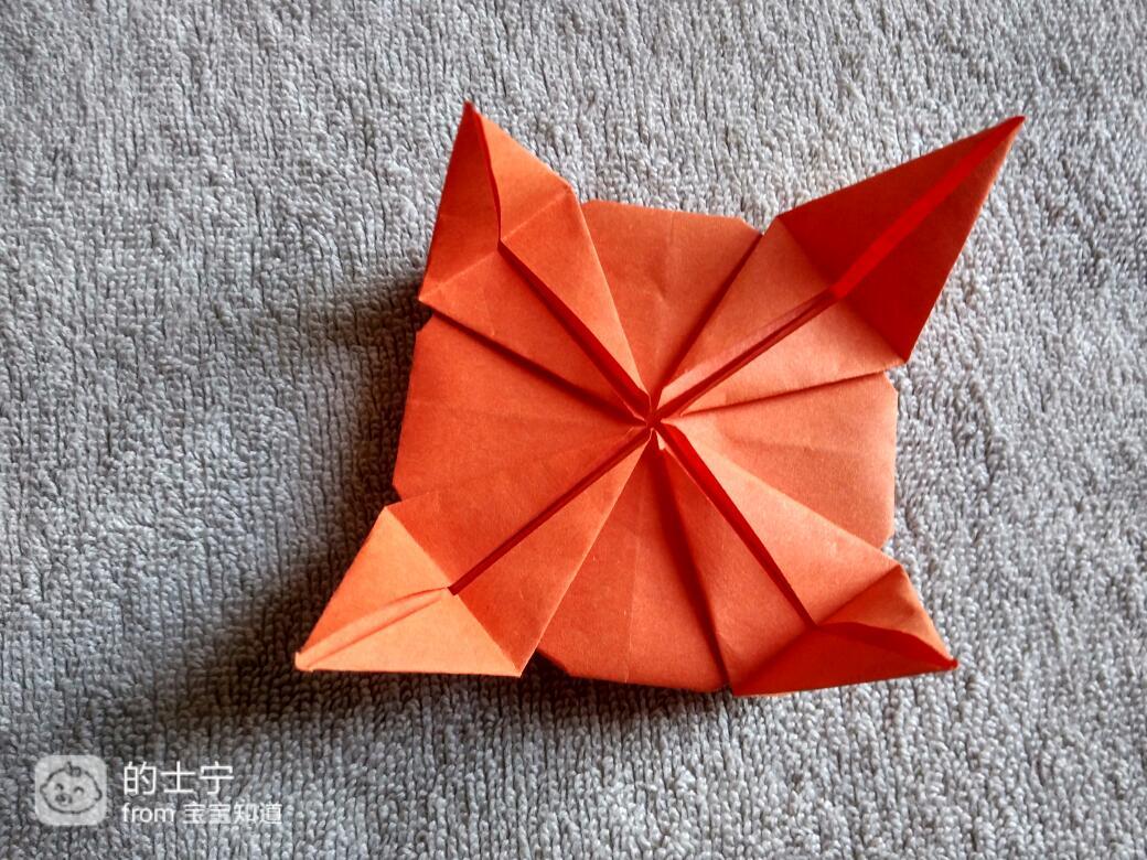 第十一步,把折好的这个图形,四个小菱形让它立起来。(如图下面)