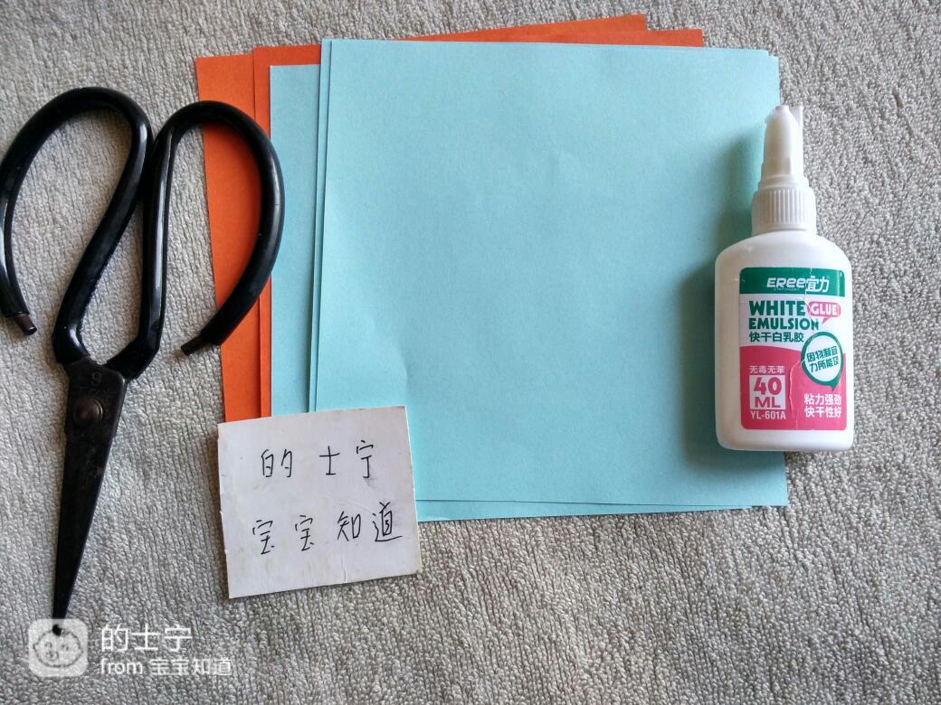第一步,材料,准备十张彩纸,胶水,一把剪刀。