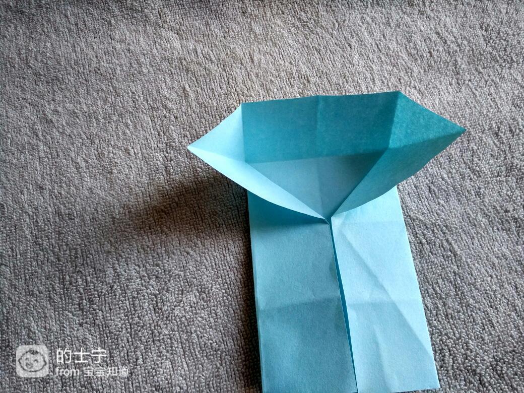 第四步,上面的图形往下一压就变成这样了,两边都是同样的折法。(如图下面)