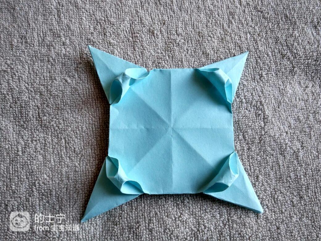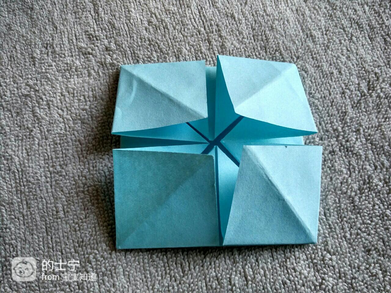 第九步,在四个小三角形撑开就变成下面的这样的图形。