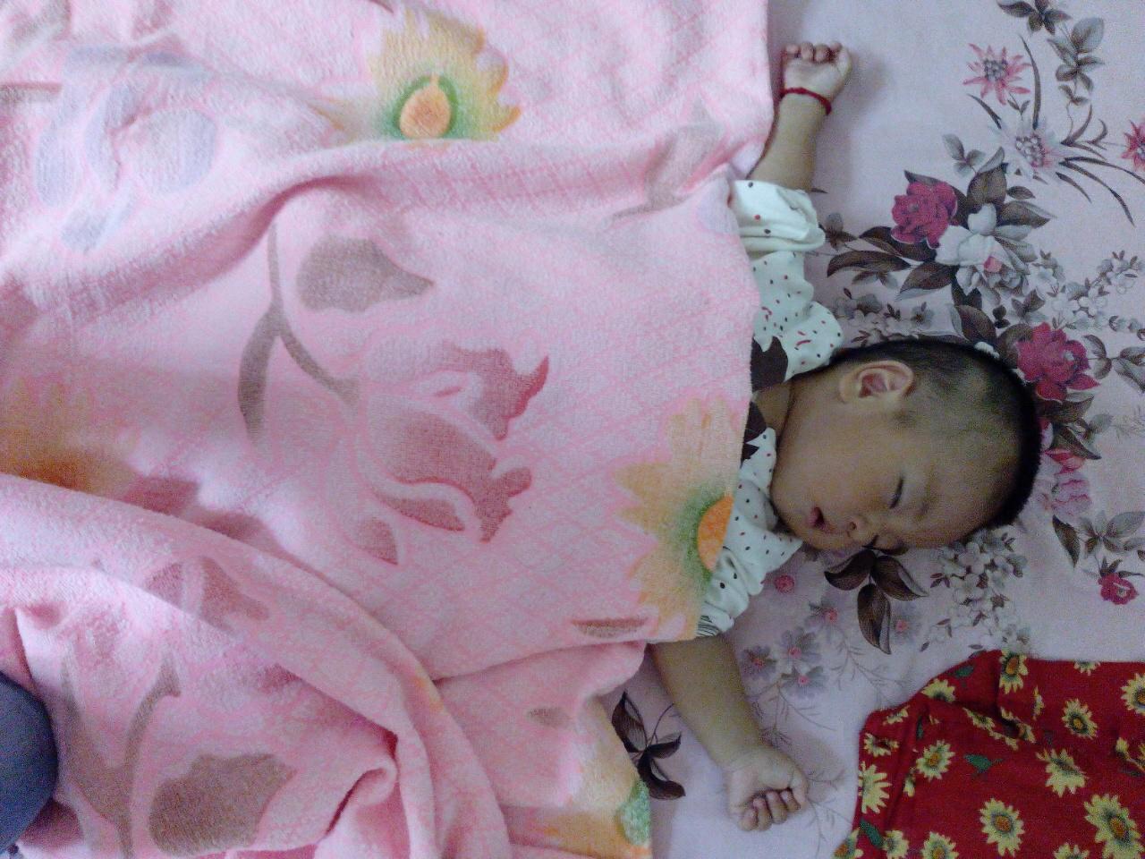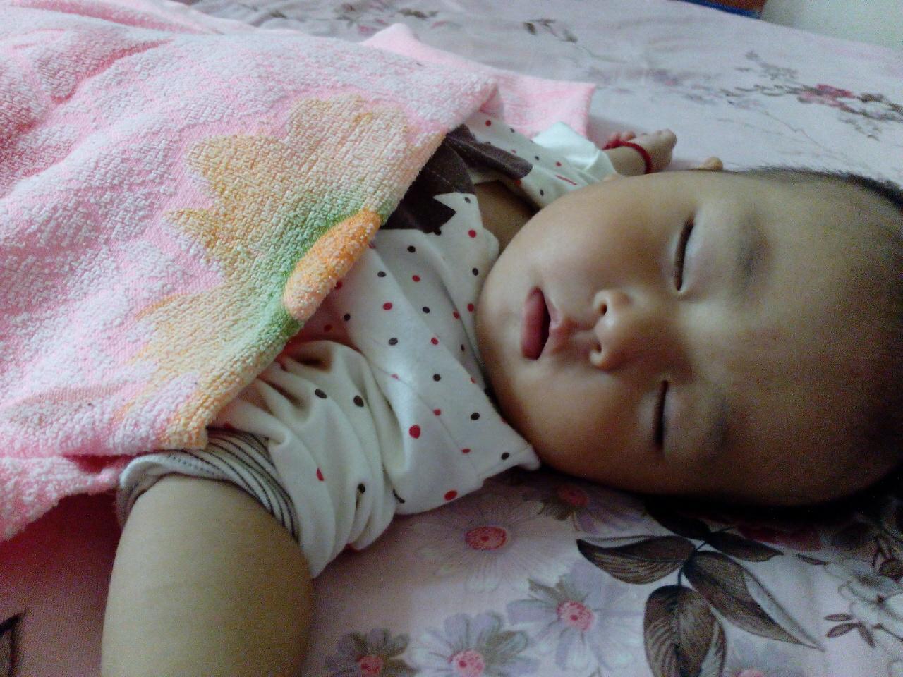 宸宸睡觉从来不爱盖胳膊!
