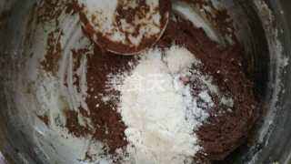 6 在加入10克可可粉。1克泡打粉。压拌均匀。泡打粉可不加。其实我也不知道泡打粉加了可以干嘛。。哈哈~~