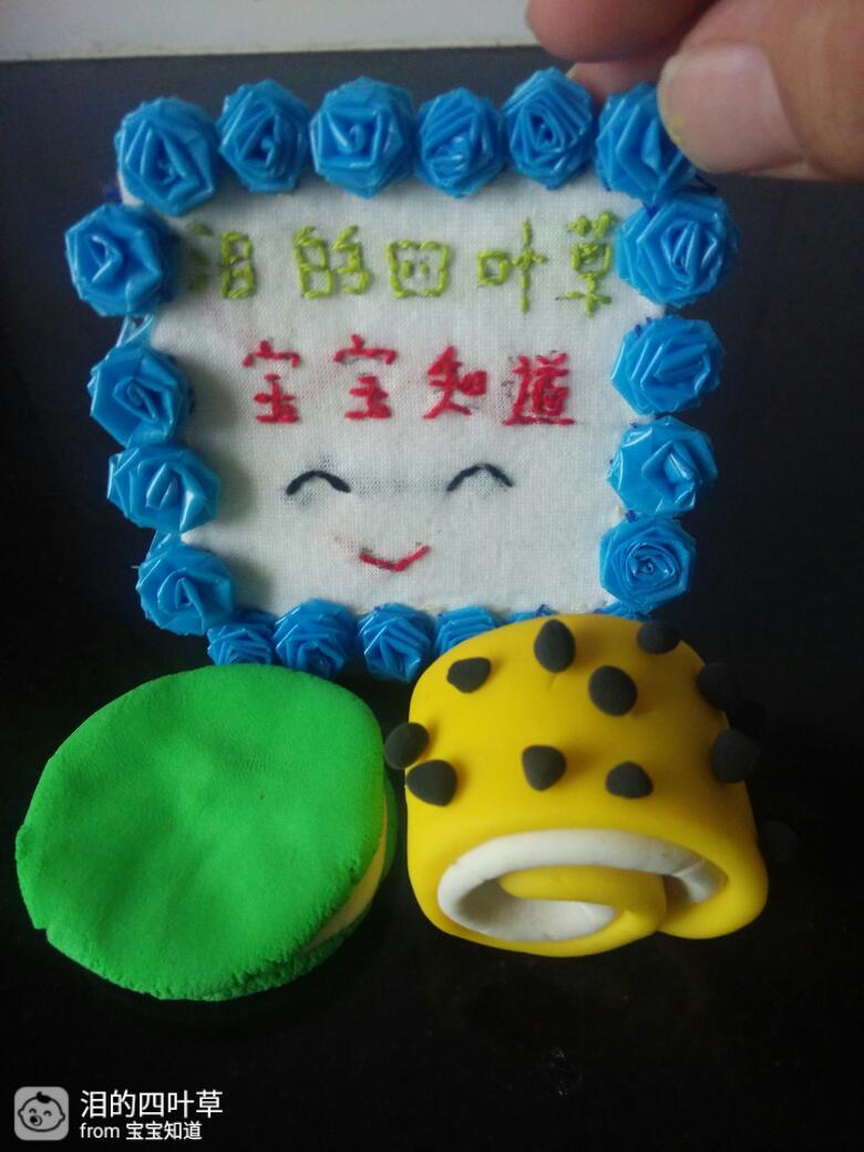 3.取一块白色彩泥用同样的方法,做出一葵苦辉块白色彩泥圆饼,当毯满做奶油夹心,如图: