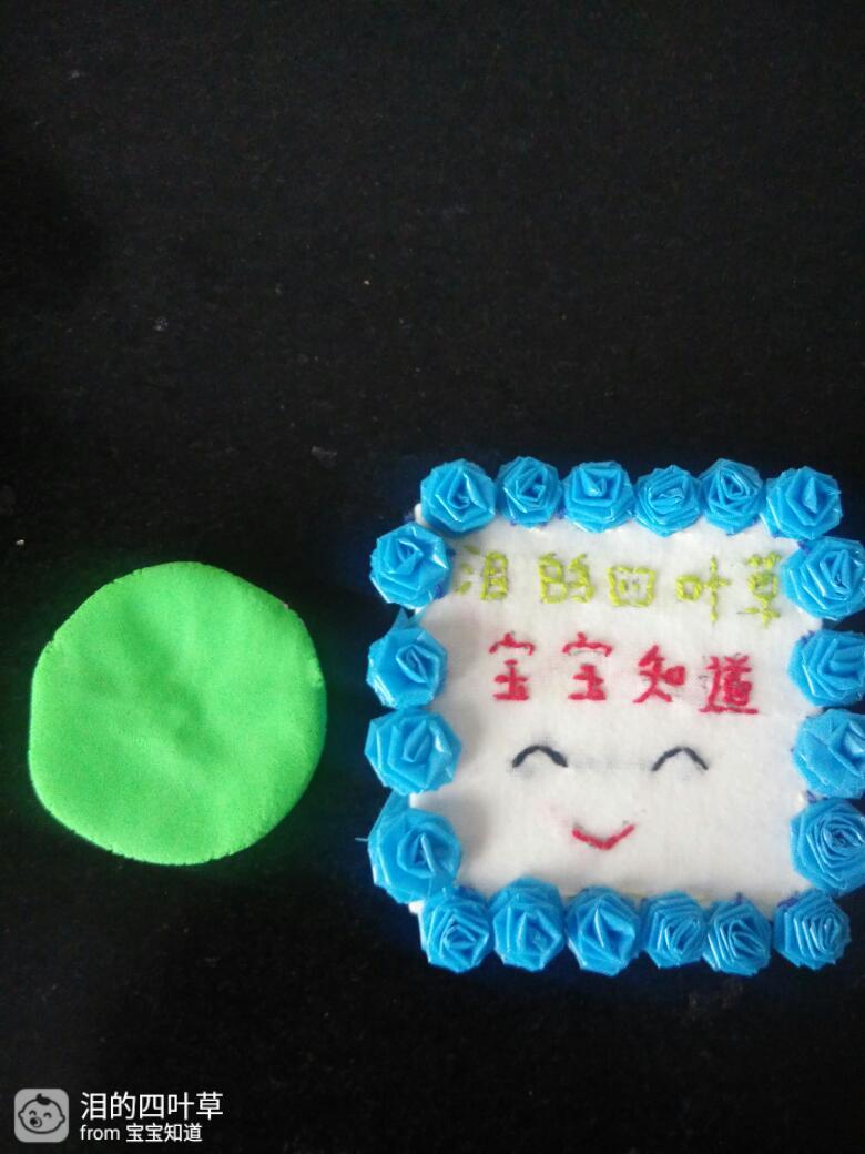 4.再取一块绿色彩泥,做出饼干的另一块,放在白色彩泥上,如图: