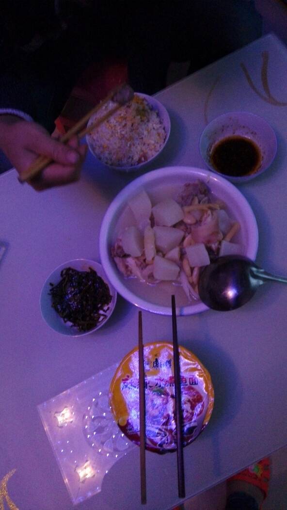 猪蹄白萝卜汤,海带,蛋炒满糟饭,急搂朗泡面,长肉的崭急节奏