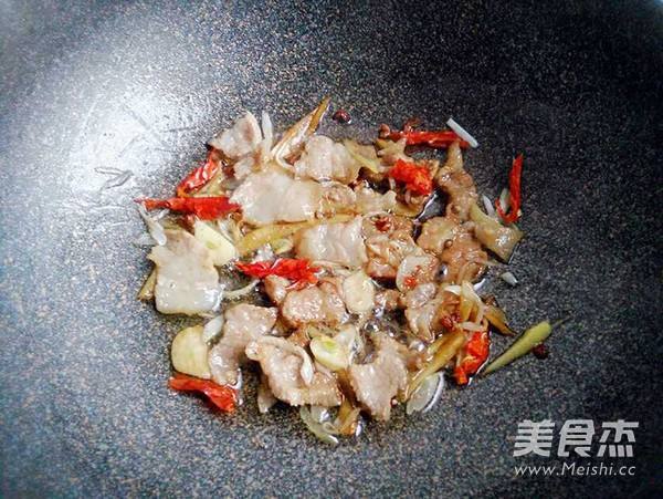 3. 锅里倒入少许食用油烧热,放入肉片翻炒