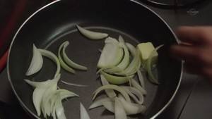 然后放入黄油和洋葱,中火炒,炒至半透明航亲