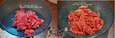 1. 鸭胸肉斜切片后放糖、生抽、孜然粉、胡椒粉、绍酒、麻油和生粉等调味料拌匀腌制15分钟