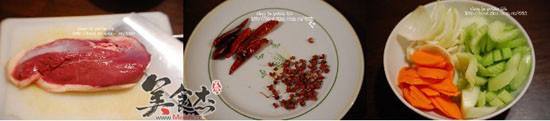 鸭肉 1块 辅料 胡萝卜 半根 西芹 1根 洋葱 半个 调料 食盐 适量 鸡精 少许 花椒 1小把 干辣椒 适量 生抽 适量 淀粉 适量 白糖 适量 胡椒粉峡欺 适量 孜然 适量 黄酒 适量 芝麻油 适量
