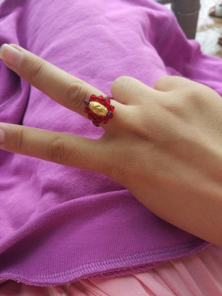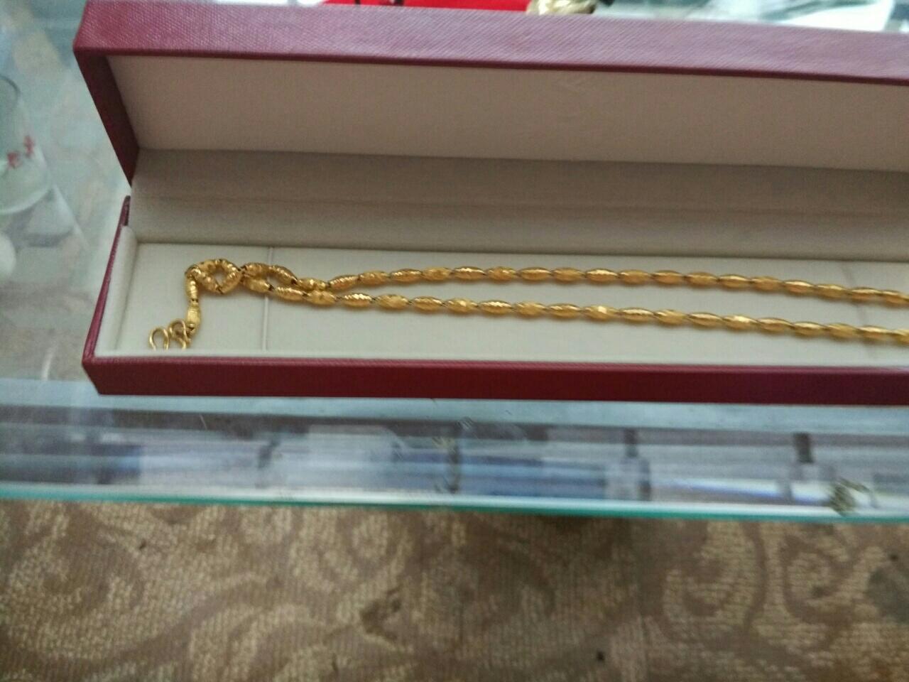中午老公带我吃了我最爱的油焖大虾。午饭之后就带着我在外面逛街。走到黄金店儿的时候。老公就问射瓦我想不想进去看看啊?反正是看看,看看就看看吧。那段时间我一直想买一个转运珠。所以我就挑了一个。虽然不是很大。但是我还是挺喜欢的。老公说你在这坐着等吧!(因为要编起来。)老公就去另一边看了。等我编好之后要回家了。跑了1天实在是太累啦。等我上了车之后。老公就拿出来一条项链。实在是太惊喜啦!