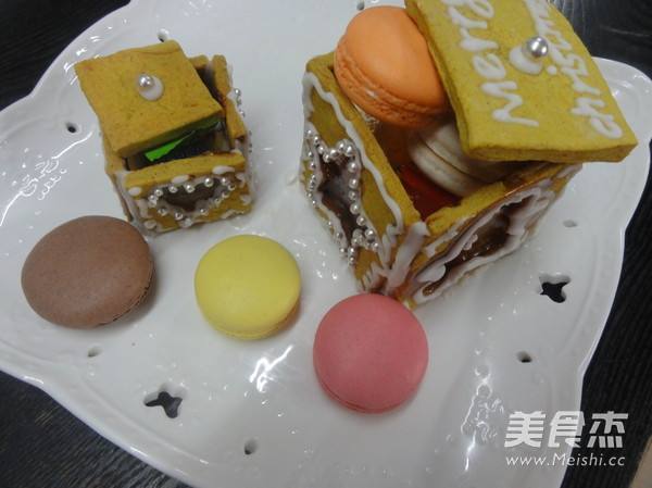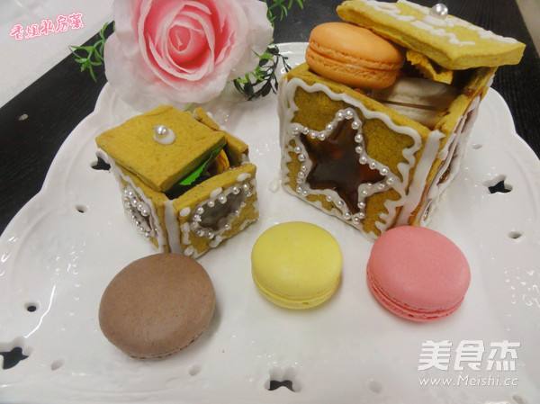 15. 在用糖霜把饼干四周粘一起,盖子中间挤点糖霜中间放颗银珠。盒子做好后可以放些糖果,马卡龙等等。