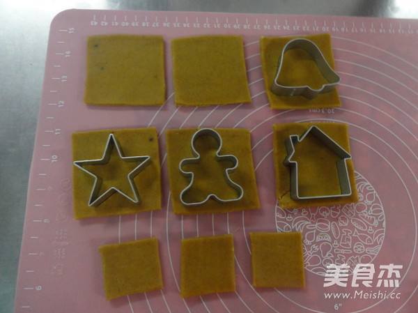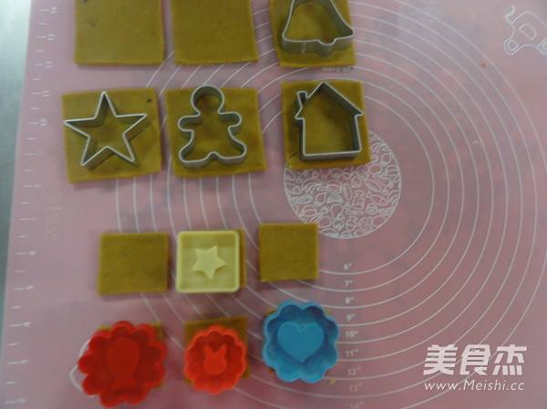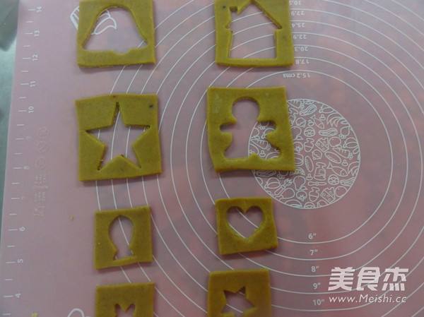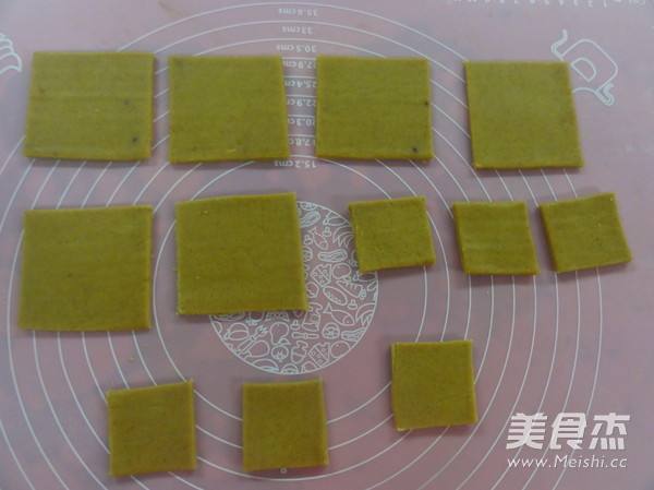 6. 用刀把饼干切成7cm正方形6个,4.5cm的小正方形6个。