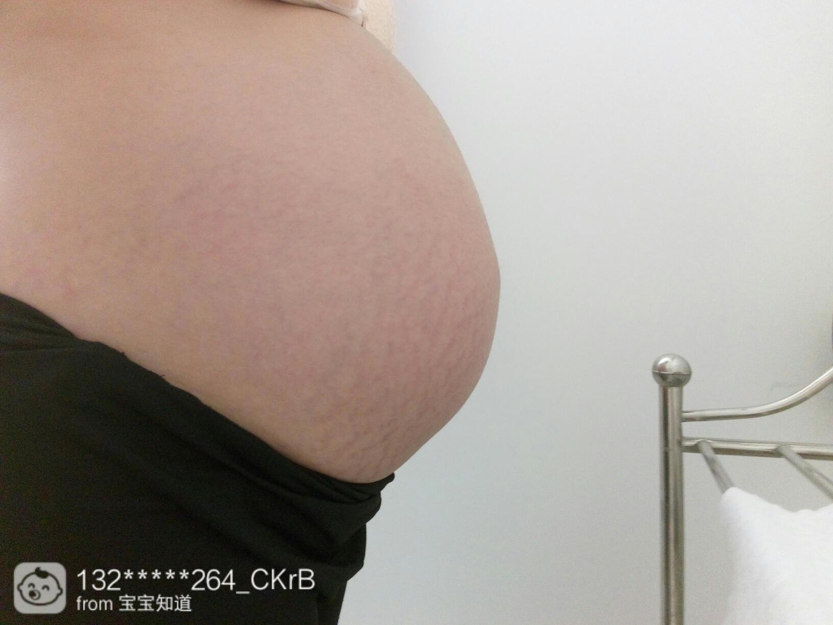 八个月了,按周期算已经八个半月了,肚子小不小,这是吃饱之后的肚子
