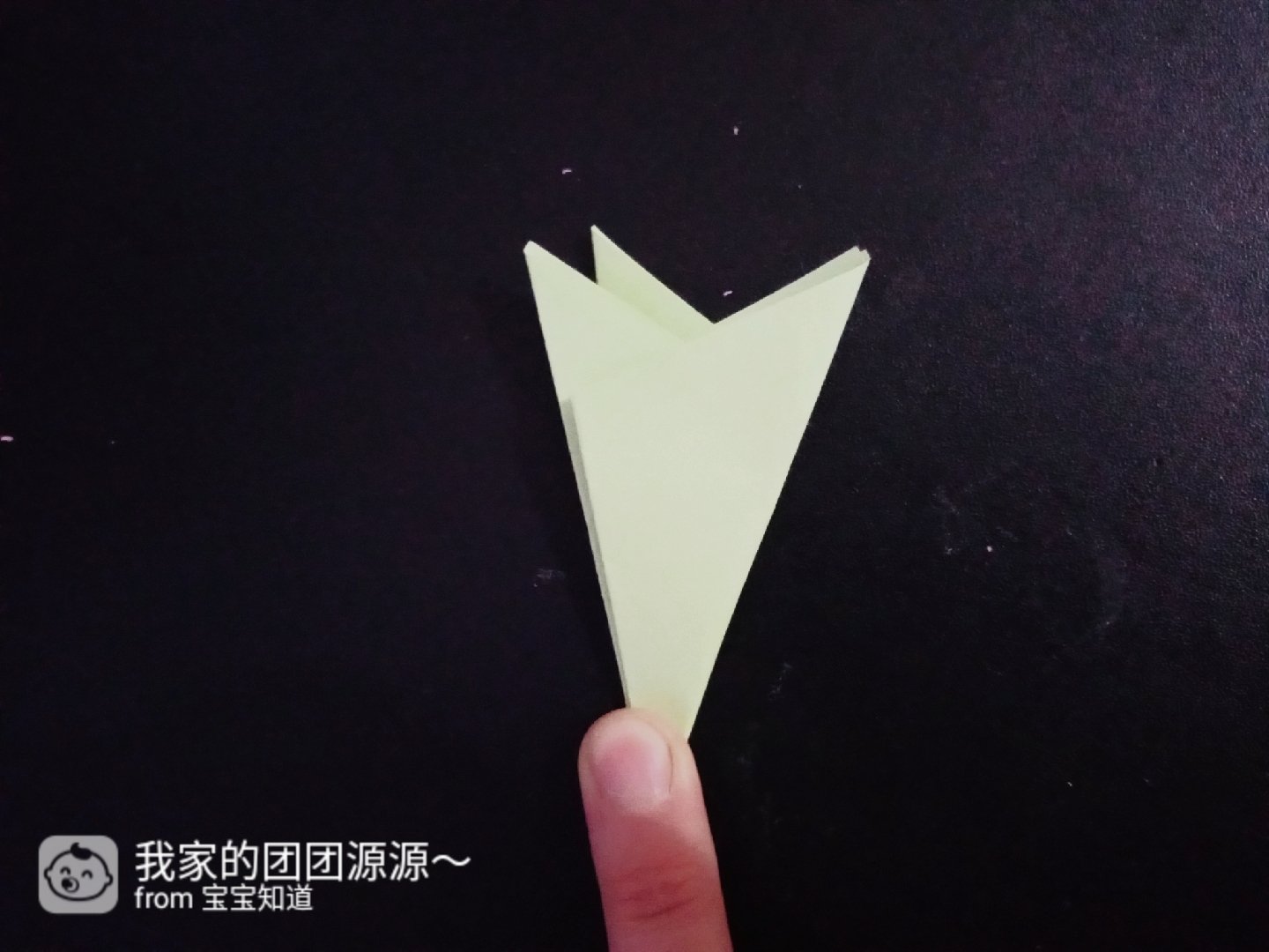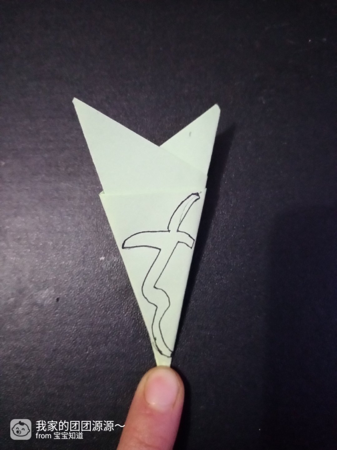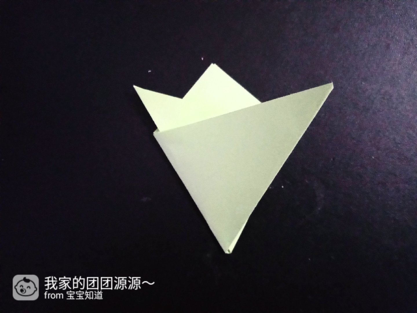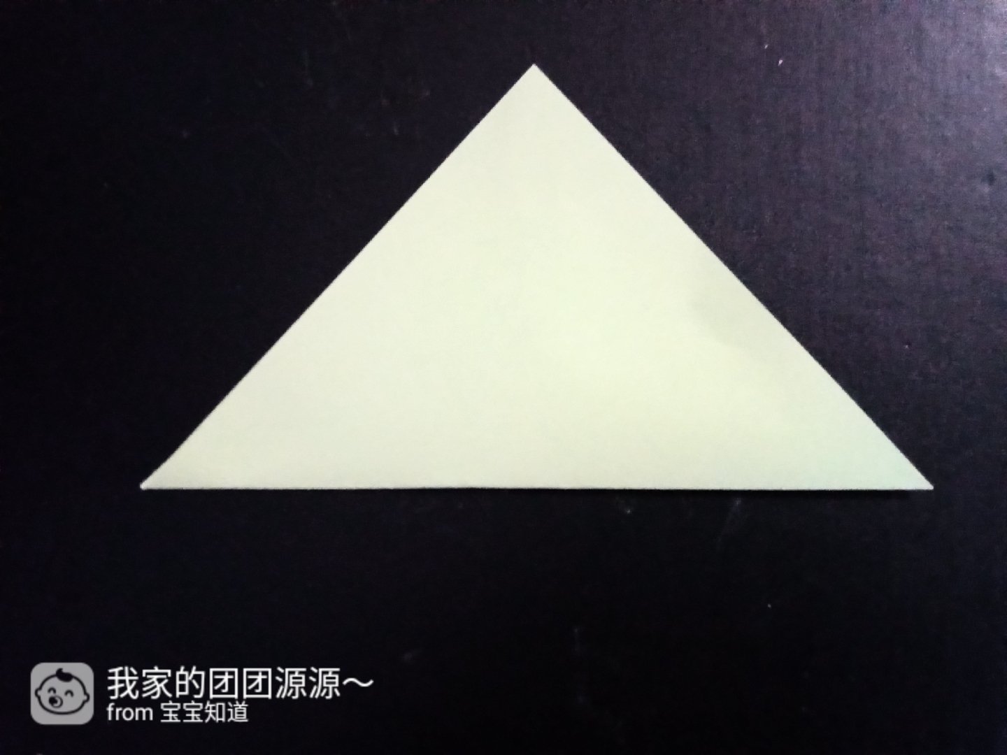 1.拿出一张淡绿色折纸,然后对折出一个三角形。如图三所示。