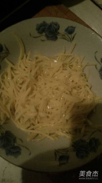 2. 洋芋丝放入2克盐命则,1克味精