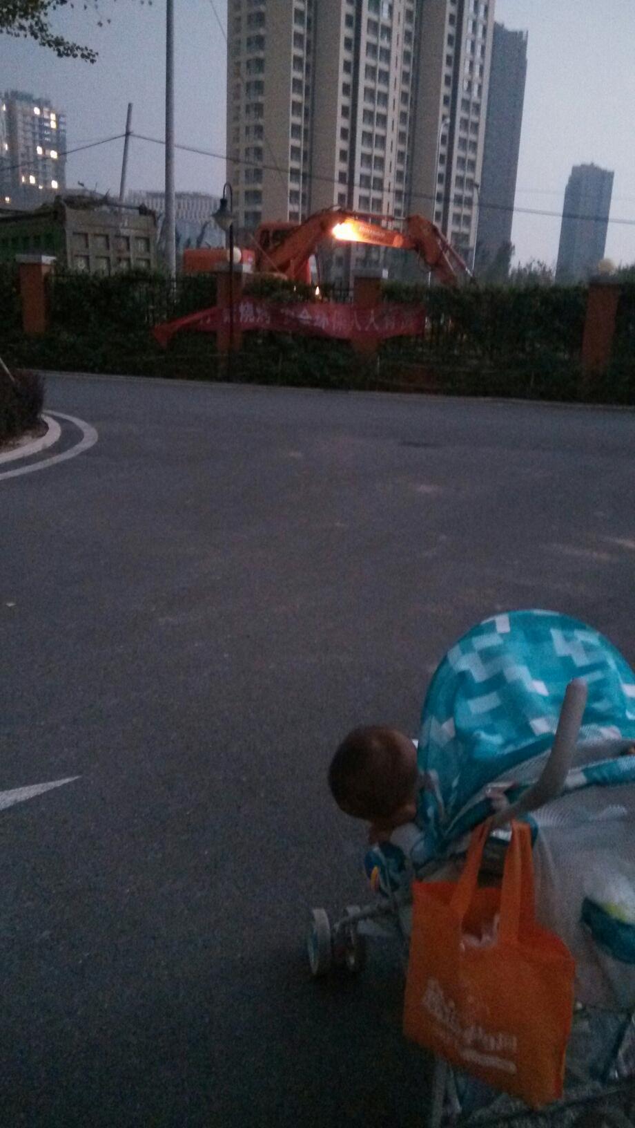 刚编府刚带宝宝看挖狼岩掘机,快下雨了!宝宝叹局栋还是不想走