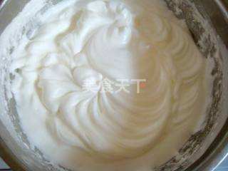 7 蛋白中加入砂糖、盐用打蛋器快速打至中性发泡。