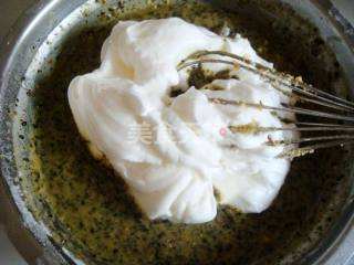 8 取三分之一的蛋白放入蛋黄糊中,翻拌均匀。