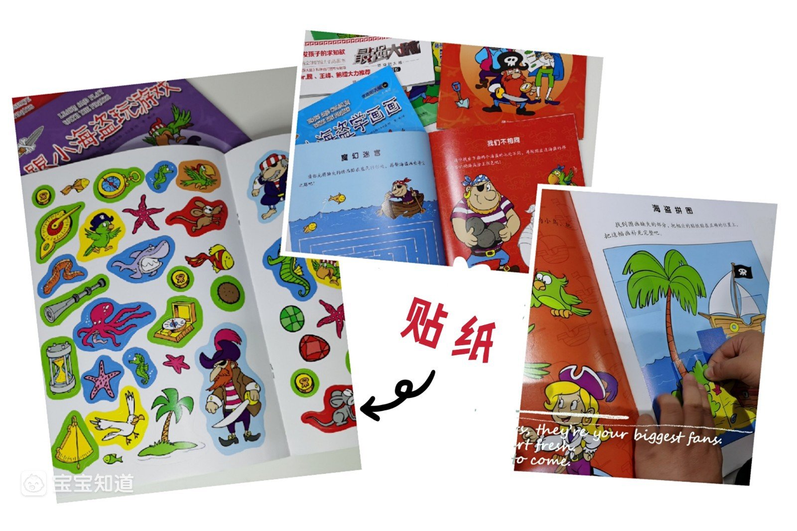 这是一套适合3岁+孩子的跟着小海盗玩游戏,学观察,学画画,学数学贴纸书,学习对于此阶段的孩子来说并不是主要任务,更多的是在游戏过程中不知不觉地学习并得到成长。