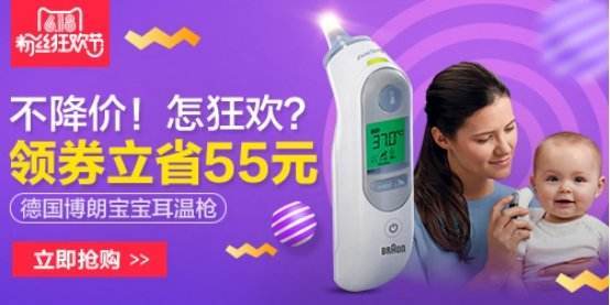 官方授权+行货品质+媲美海外的价格,让 centurymall海外旗竖法栋舰店 的业绩仅一年就成功取得天猫母婴类TOP20的排名。在去年的双11活动中更是创下一天销售过万台的产品业绩。于是在今年的天猫粉丝狂欢节, centurymall海外旗舰店 给予广大粉丝更大的活动回馈,不但全场商品低至3折,更有 博朗耳温枪IRT6520系列最低24 3 元就能买到手 的大血拼活动 ,比日常售价328元 足足 直降8 5 元!