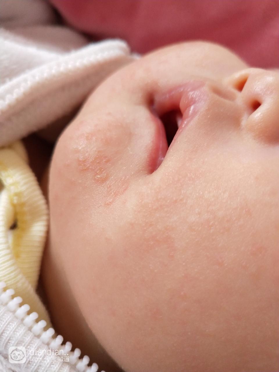 口水疹,擦保湿霜,将皮肤和口水隔离开就好了