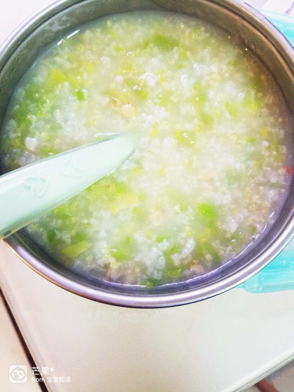 10月13日上午西兰花土豆泥米粉,下午白菜虾丝瓜鲜粥