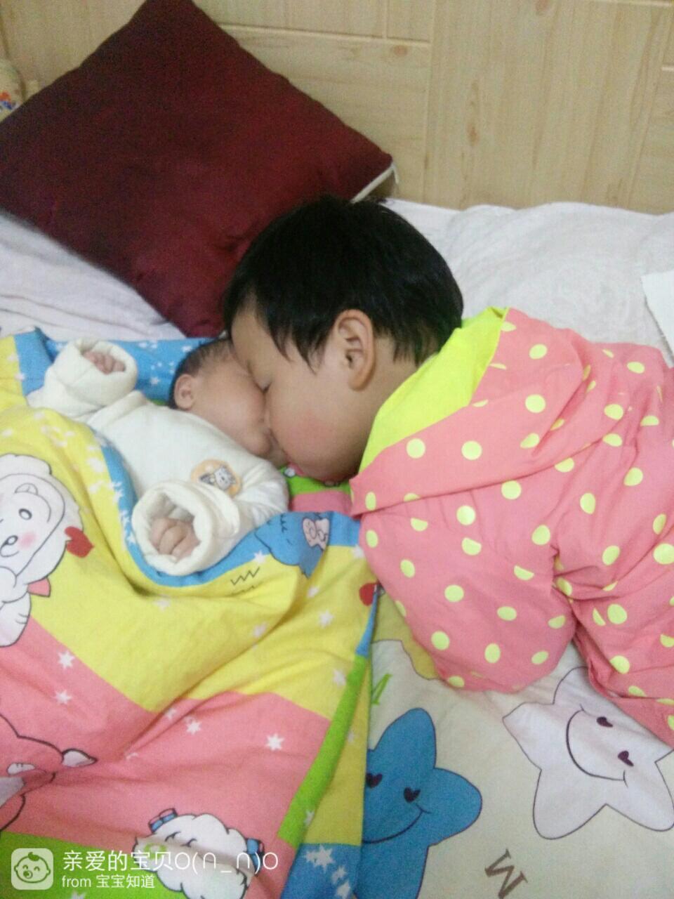 因为毕竟大宝太小,平时还是不敢让她离二宝太近,怕她伤着二宝,让她出去总要亲亲妹妹才出去,看到她这么乖,我的心里既开心又愧疚,毕竟一般想她这么大的孩子还在妈妈怀里撒娇,而她基本上每天都是跟着奶奶