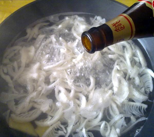 6. 在继续煮半分钟,关火挤荒,将牛百叶捞出;