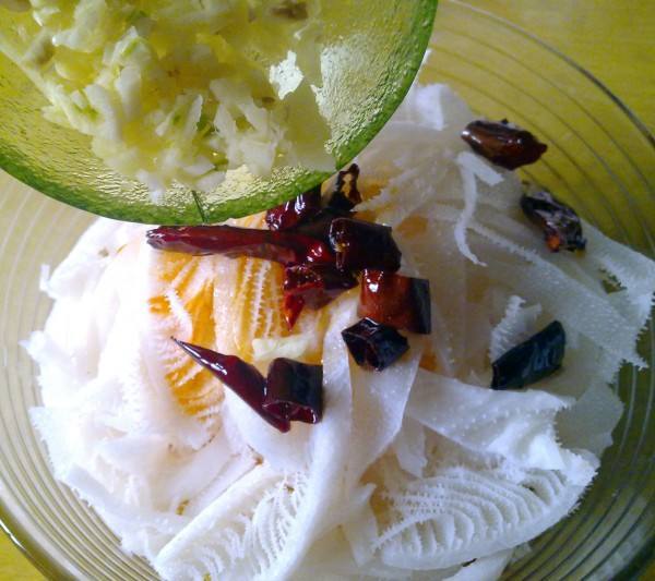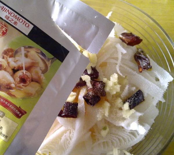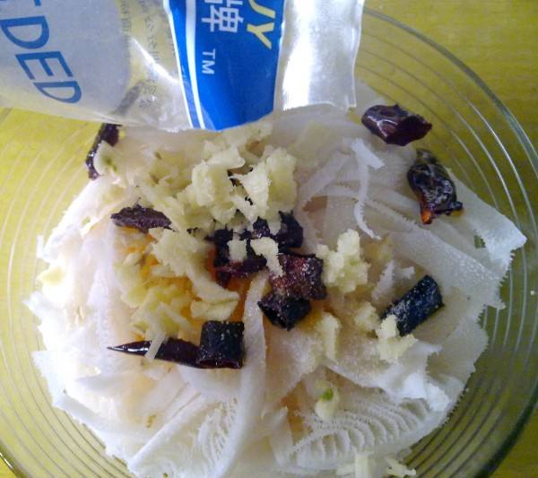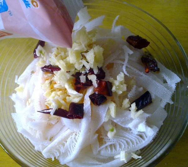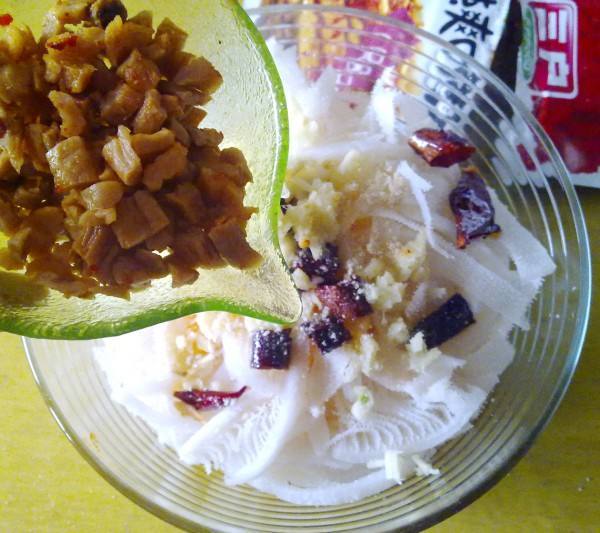 18. 加入切碎的麻辣萝卜,搅拌均匀即可。