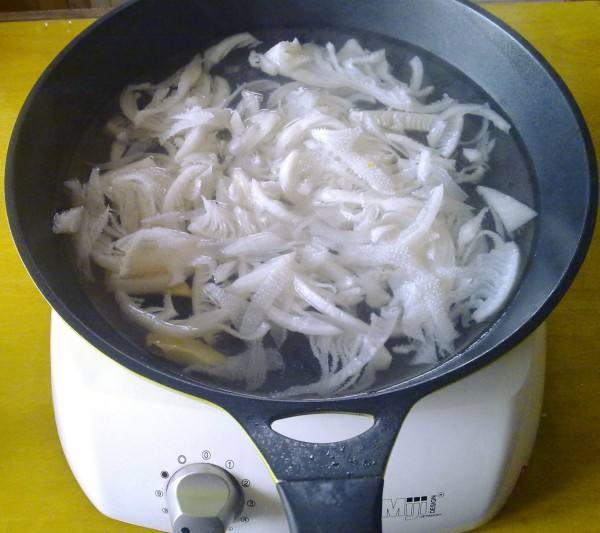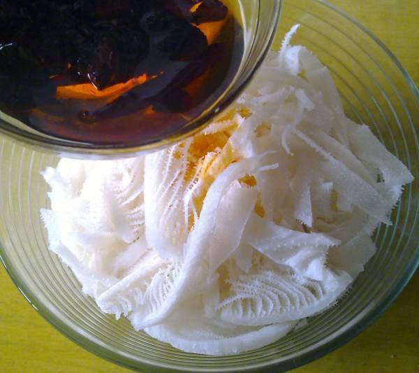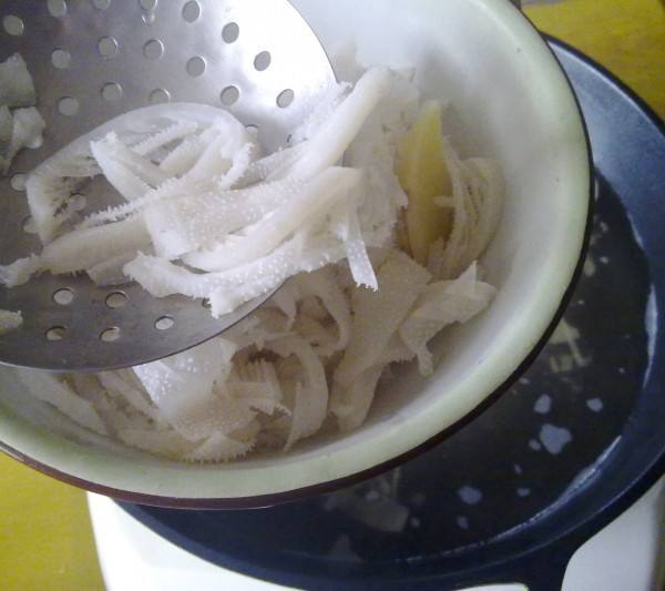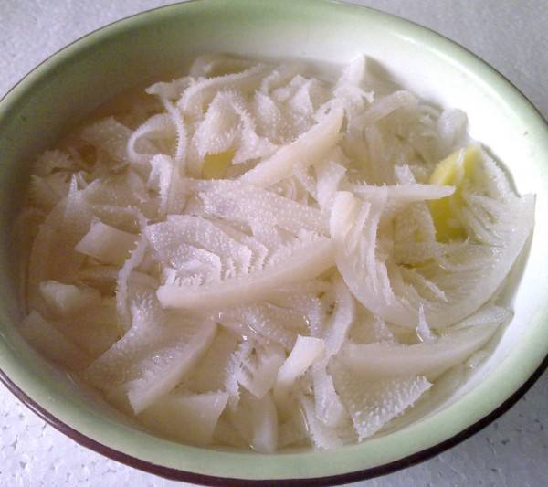 7. 捞出的牛百叶立刻置入冷水,片刻后捞起,沥干水份待用;