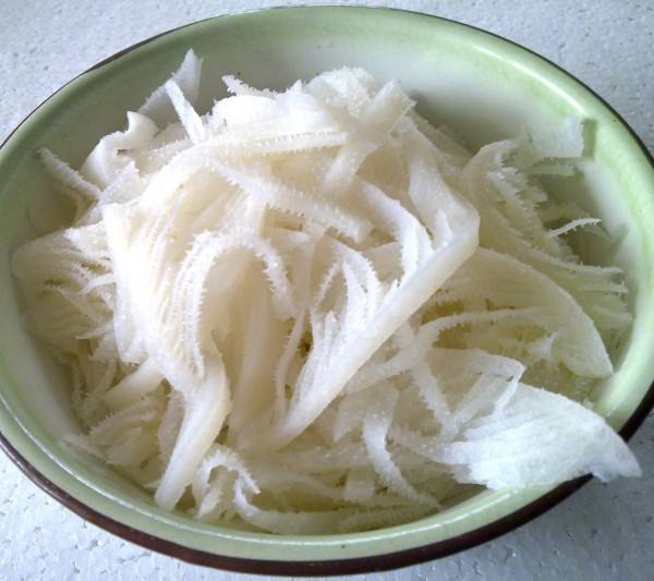 红油牛百叶的做法 1. 牛百叶洗净、切粗丝;