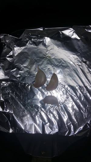 空气炸锅预热至80°c,然后再锅底铺上锡纸、刷一层油摆上带皮大蒜