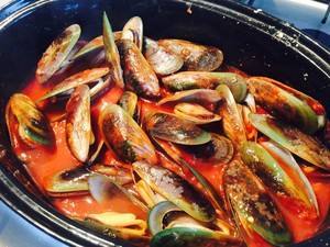 把所有材料放锅里 撒上橄榄油 两梨清大勺青贝的汤汁 中火煮10分钟左右