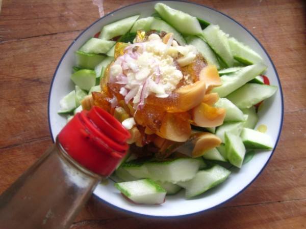 凉拌黄瓜变蛋的做法 1. 准备食材