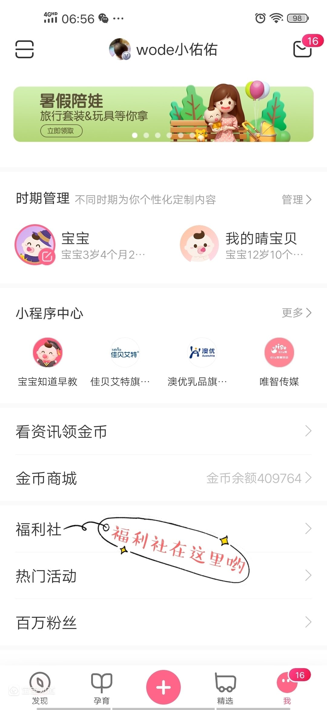 宝宝知道的试用都是免费赠送的呢!打开宝宝知道“我”的页面糕苦,找到【福利社】,按照截图所示点进去……