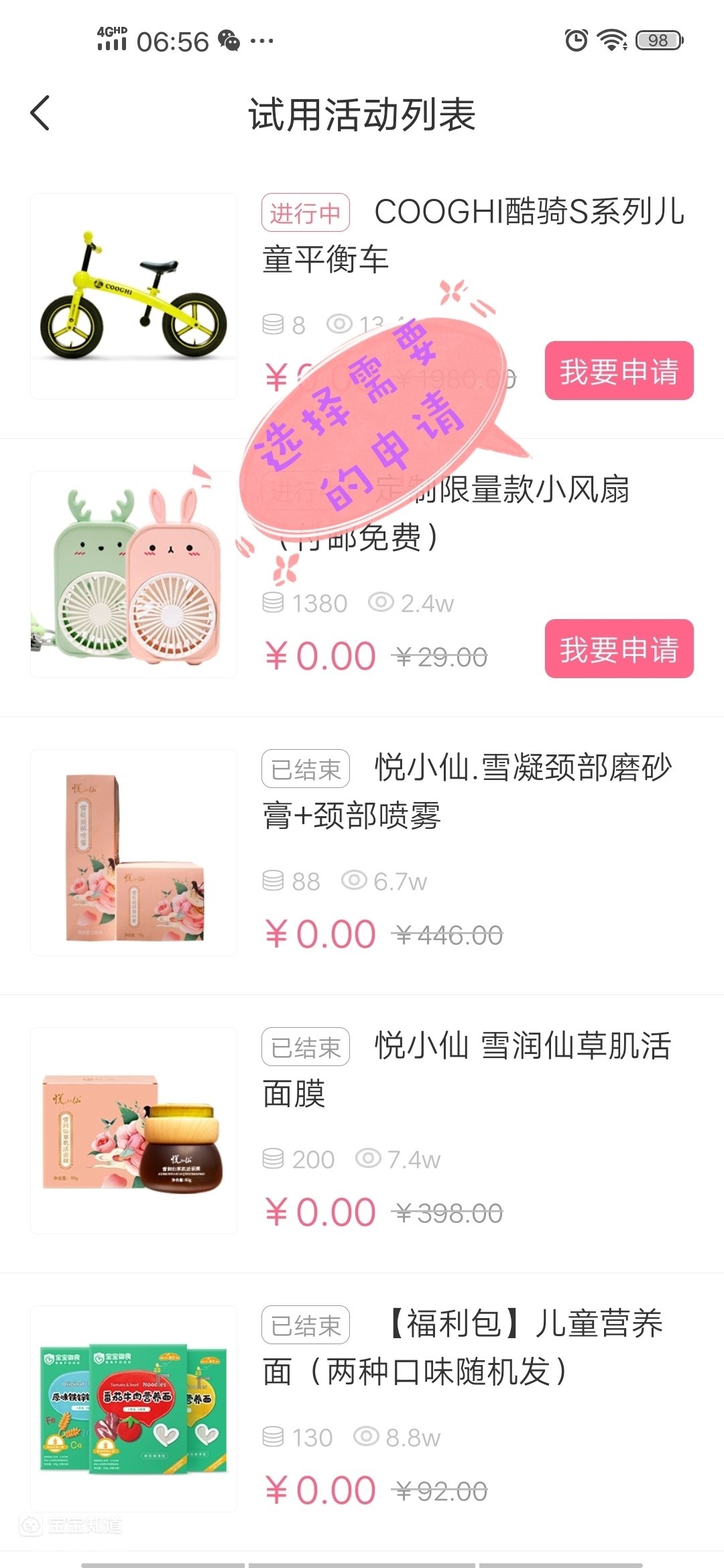 就能看到上面的页面,点击右上角的“更多”,这时候就可以看到试用的页面,里面有不少的产品等着你去试用呢!选择自己需要的,点进去申请就可以了。