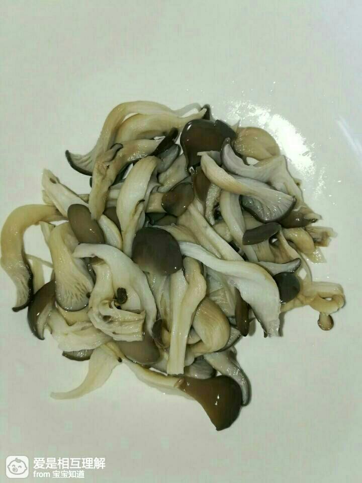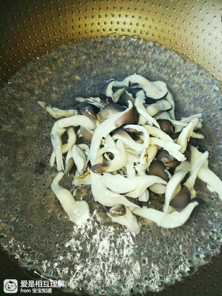 平菇洗干净撕小朵,锅里烧开水放平菇煮三分钟,用冷水投干净挤水。