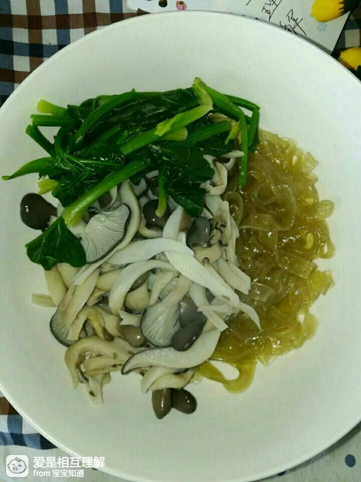 锅里重心烧水,把平菇在倒进去眠悼锅开捞出控水,菠菜和粉条也烫一下捞出控水,然后码到碗底。