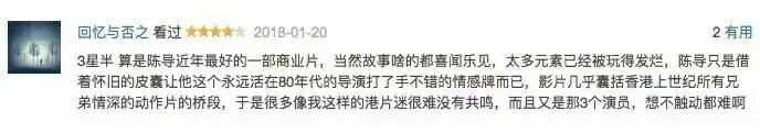 2个宝宝 LV.24无论是兄弟三人在影片中的站位构图,还是在延续陈木胜向来擅长的枪战、爆炸案外,增添的更多像兄弟情深这样“软”的情感,都可圈可点。