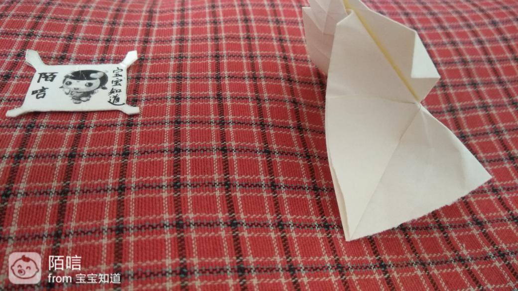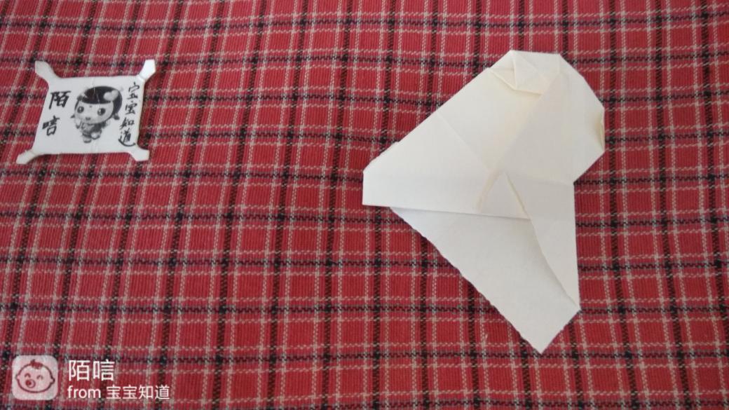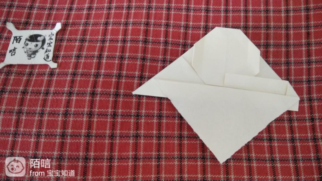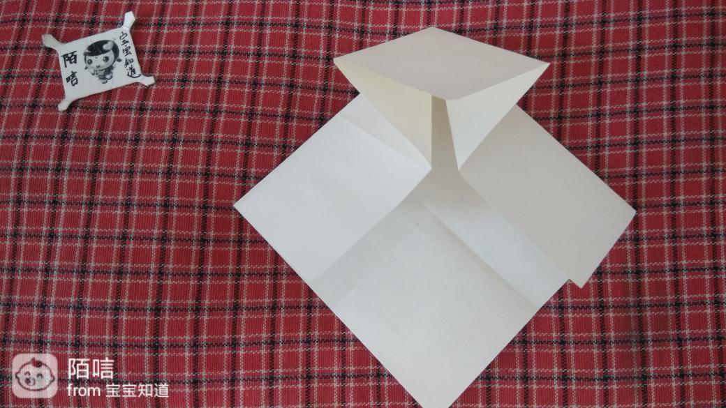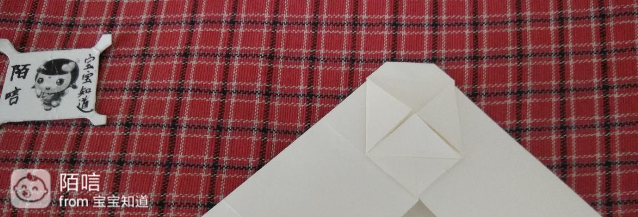步骤10,把左右两边的角向上折,再把右边的折边向上折,然后右边顺势撑开向下按压。