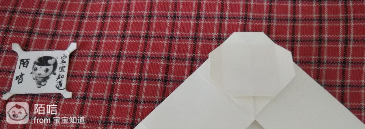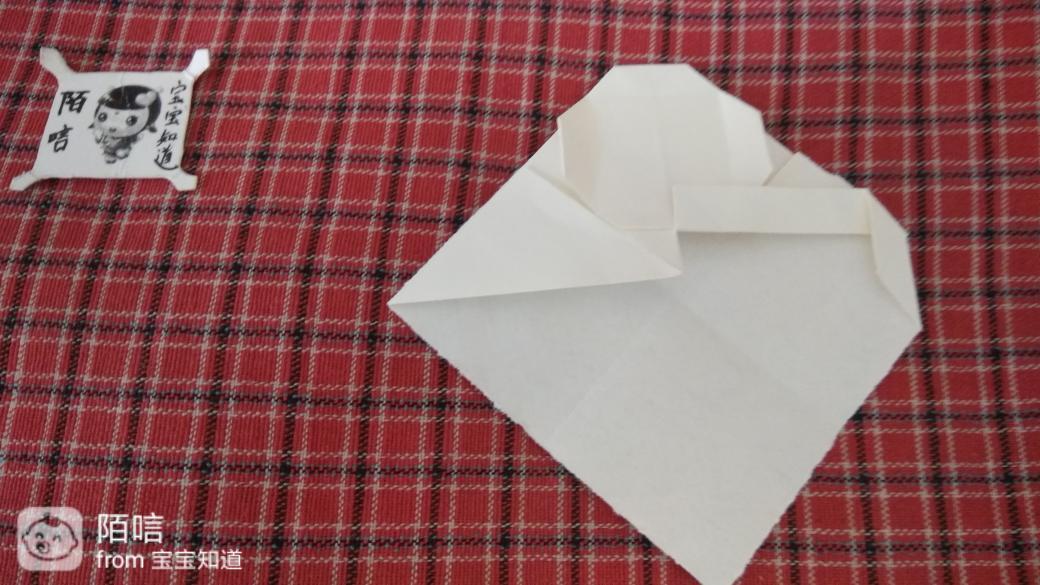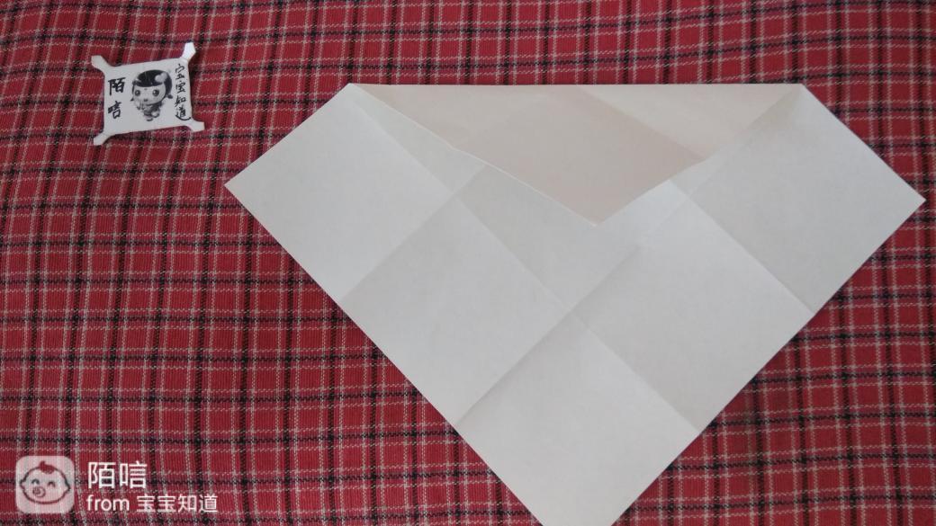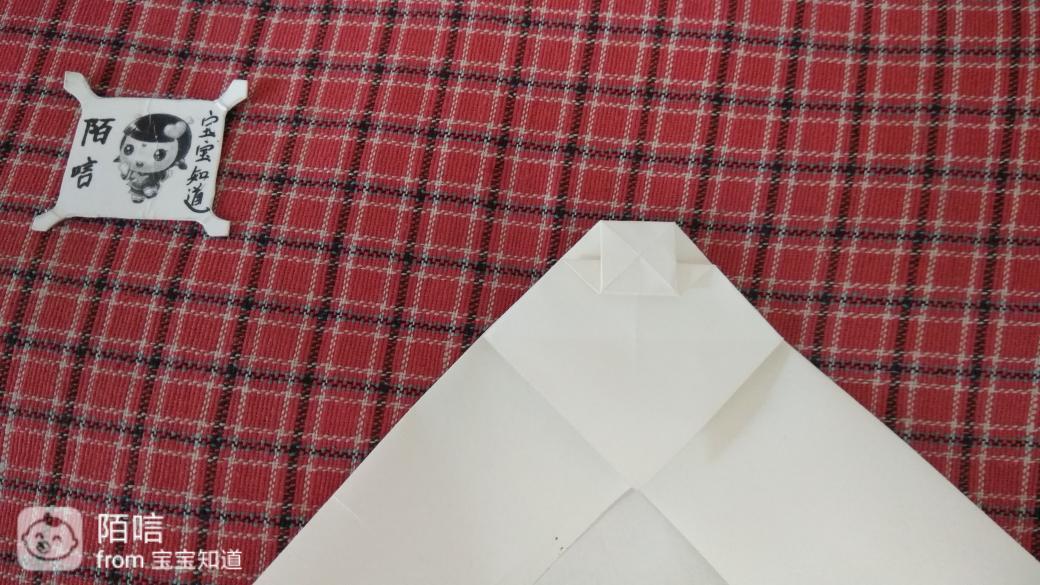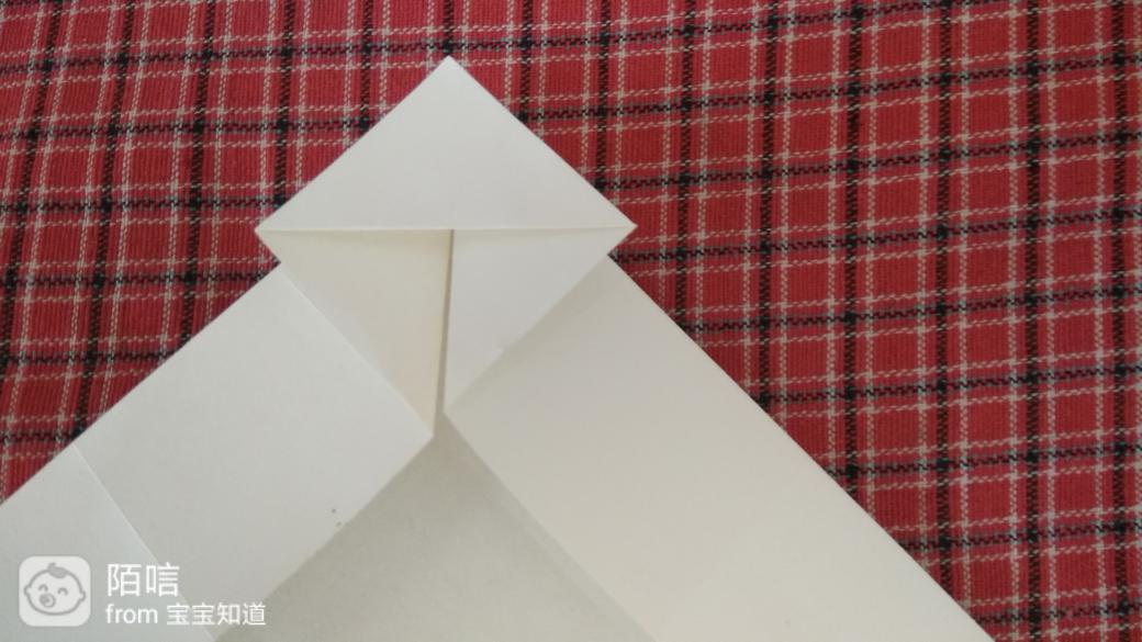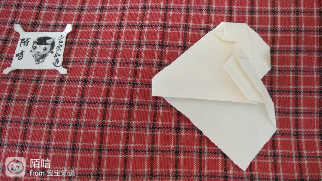步骤11,把上面辉虏的角折到中间纸层中,再把下面的角顺着边向上折,然后在顺着折边向下折。