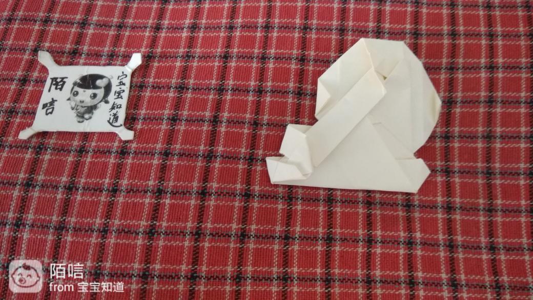 步骤18,把彩纸翻过来,将上面的角分别向里折,使其更加圆润,形成月亮。再把下面的角向后折,使云端更加圆润,这样多云就折好了。