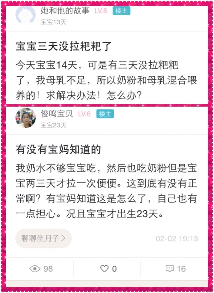 最近在月子圈,看到不少的宝妈,发的帖子——都是着急,由于母乳不足,选择混合喂养,宝宝好几天没有拉便便,哪里不舒服了?到底怎么了?需要喝水来缓解便秘?妈妈需要忌口或者吃青菜不?奶水不足,该怎么“追奶”?带着妈妈的疑问,今天铠宝妈,给妈妈解答这些疑问。